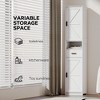 Maximize your home storage with this 69-inch tall freestanding cabinet featuring two barn-style doors, one drawer, and multiple adjustable shelves. Its narrow, vertical design provides ample storage without taking up much floor space—ideal for compact bathrooms, kitchens, or entryways. Crafted from durable particle board with solid wood legs and an anti-tip kit for extra stability, this cabinet combines functionality, safety, and timeless charm.