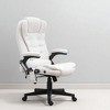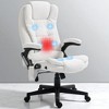 Enjoy relaxation and support throughout your workday with this linen high back executive massage office chair. Designed with six vibration points and a lumbar heating function, this chair soothes muscle tension while keeping you productive. The breathable linen-feel fabric, reclining backrest, and padded armrests offer long-lasting comfort, while the remote control lets you adjust settings with ease.
