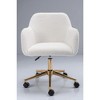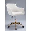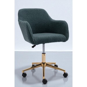 Elevate your workspace with this modern home office chair, crafted with soft teddy fabric and a stylish gold metal base. Designed for both comfort and aesthetics, it features ergonomic height adjustability, 360-degree swivel functionality, and smooth-rolling wheels. Whether placed in a home office, reading corner, or living room, this chair delivers a cozy yet refined seating experience. Product Features