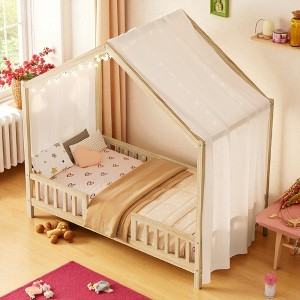 - 【Montessori-Inspired Floor Bed with Canopy】Designed to encourage independence and imagination, this Montessori-style floor bed features a charming house shape and a lightweight canopy frame. Ideal for toddlers transitioning from a crib to a big-kid bed.