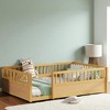 Mshliw Twin/Full Size Floor Bed with Safety Fence and Open Door, Wooden Montessori Style Platform Bed Frame for Toddlers and Kids Bedroom or Playroom