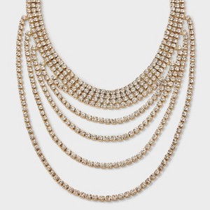 Add an elegant touch to your going-out looks with this Multi-Row Necklace from A New Day™. Designed with multiple delicate sparkly crystals, this gold-finish necklace adds the right amount of shimmer to your outfits. Crafted from nickel-free metal to suit most skin types, it fastens securely with a lobster claw clasp and includes an extender chain for length customization.