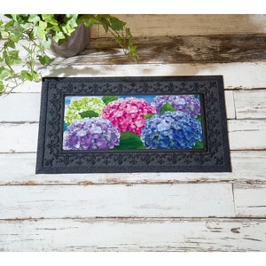 Give guests a warm welcome with this Sassafras Switch Mat. It features a beautiful design that’s sure to make friends and family smile. Crafted from heat-sublimated polyester with a rubber backing, this versatile mat is designed to fit perfectly within Evergreen's switch doormat bases. The mildew resistant mat is ideal for indoor or outdoor use and features a skid-resistant backing to help keep it in place. This welcoming mat will freshen up your stoop season after season while ensuring your home stays debris-free. For stains, simply spot clean with soap and warm water.