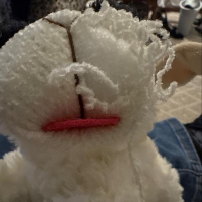 My dog, who is usually pretty gentle with her stuffies, ripped the face off of the lamb within two days. RIP, Lamby