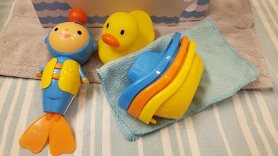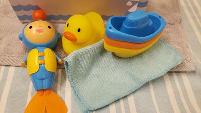 - Adorable infant or toddler bath set featuring 3 fun bath toys in ready-to-gift packaging