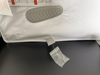 This pad is practical and there’s not much to dislike about it. I did in-store pickup and the one I got has some permanent indents on it, probably from being stacked. Other than that, it’s very easy to wipe clean, and the straps come with screws to secure it to your dresser if needed. All the warning labels are under the pad and not visible at all on mine, so I don’t know why some people received something different; however, a changing pad cover can add a nice touch. Overall, I recommend!