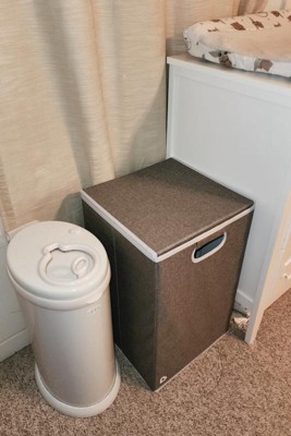 [This review was collected as part of a promotion.] I had been looking for a new laundry hamper for our nursery and was so excited when this one arrived! The color and style fits so well in our space. Love that the top closes for a cleaner look. And the size has ample space for clothes and crib sheets between laundering. It also folds compactly between uses. I couldn't be happier with this product and highly recommend! I received this product for free in exchange for my honest opinion. This in no way influenced my review.