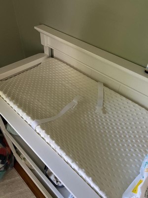 [This review was collected as part of a promotion.] I absolutely have been loving this changing pad with the cover. The changing pad is super comfortable and a great size I love how it includes the secure grips so the pad is not moving around while changing your little one. It can be attached to the table or dresser. The material is so soft and goes great on the wash, I love it! Definitely one of my favorite products.