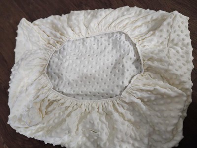 [This review was collected as part of a promotion.] These changing covers are great! They fit perfectly on the changing pad and they are soft and comfortable for my son. The texture is polka dots that raise up and give off a little cushion to my son. They’re easy to wash and it’s always great to have one ready on hand when there is a blowout! I live in central CA where it reaches 100 degrees all summer long and I did notice my son sweating a little if I left him too long on it. Not a big deal but just a heads up.