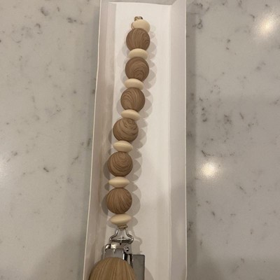 The Mushie silicone pacifier clip offers durability, function and simplicity to families on-the-go. Made from 100% food-grade silicone, our clip features a faux wood silicone clasp that brings a modern take to a traditional favorite. With a simple stack of silicone beads in two complementary colors, the Eva clip offers a sophisticated touch to your pacifier accessories. The clip is easy to clean and helps keep soothing items in reach for little ones.