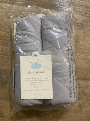Keep baby comfy and dry with the Muslin Changing Pad Liners from cloud island™. This pack includes two crib liner pads with diamond-stitched quilting that coordinates easily with your existing nursery decor. They have a top layer of cotton fabric to draw moisture away from baby's body, along with PVC-free waterproof backing to help provide extra protection during messy diaper changes. Machine-washable and reusable, these liners can be used on a changing table, or you can place one in the stroller, in the car seat or in the diaper bag to ensure you're ready for on-the-go diaper changes.