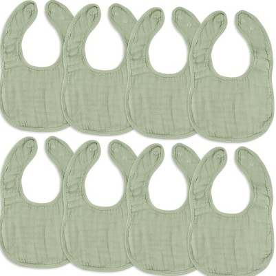 Muslin Cotton Baby Bibs, 8 Pack, Adjustable Size with Easy Snaps, Soft and Super Absorbent, Washable and Reusable By Comfy Cubs