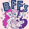 • The smallest family members are also the most stylish with this new toddlers' t-shirt that is perfect for every occasion! FeaturingFluttershy, Pinkie Pie, and Rarity cutely posing below stars and the word: "BFFs."