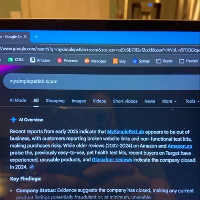 I was away for a few months. I came home my dog still with issues. I tried to activate the test and send in my sample. HMM. Doesnt exist. Contacted Simple Labs. nope not ours. No Web for Simple Pet Lab. So either Simple Labs is washing their hands of this testing line or Target is selling bogus tests. Time to call the Better Business Bureau. I want my money back