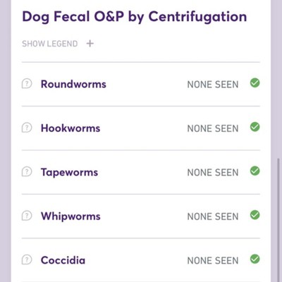 So nice to be able to test my dogs poop from home. Easy to collect and results came to me and my vet- my dog had hookworms and I never saw the symptoms:( I felt terrible but my vet called and I was able to pick up treatment that same day. I will be buying another test for her recheck in 3 weeks!