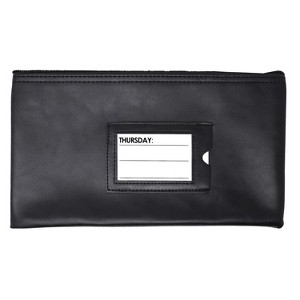 The Black Nadex Coins Vinyl 7 Day Pack of Zippered Bank Deposit Cash and Coin Bags with Card Window is ideal to carry coins and bank deposits. Each is water-resistant and made of finished vinyl seams with a durable stitched nylon zipper. They're useful for all utilities including carrying money, banking and financial documents, school supplies, maps, receipts, security purse at work, and jewelry.