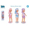 Say hello to Nancy in a brand new look! With her fantastic iridescent outfits in pink, purple, and blue, she’s all about coordinating her look from head to toe. Nancy’s look includes iridescent hair and a shiny, metallic-effect skirt, a printed t-shirt, and matching shoes. Whether you're styling her hair or dressing her up, Nancy is always ready to shine bright and stand out!