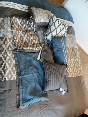[This review was collected as part of a promotion.] This 12 Piece comfort set includes a quality king comforter, two sets of curtains, four small throw pillows, four pillow covers, and a bed skirt. The colors are rich and beautiful. It matches the picture exactly. I took one star off because the curtains I received in this set were too short for my windows. But I would highly recommend this set for anyone! So beautiful!!!