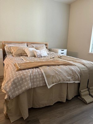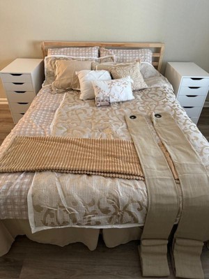 [This review was collected as part of a promotion.] This California king comforter set has everything you need and a bit more for making a cozy and luxurious bedroom. It comes even with a set of nice and thick curtains. The color is neutral and doesnt look like too gold in real person. It’s more like a taupe champagne shade. The materials are descent since they are made of polyester and not 100% cotton. But they don’t wrinkle that easy which is amazing. I was able to fit the California king set in my king bed except for the bed skirt which is slightly different in size. Everything else is the same size. The only reason I don’t give 5 stars are because the material is not cotton, everything else satisfied me.