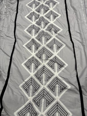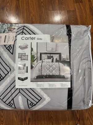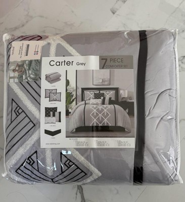 [This review was collected as part of a promotion.] I got the Carter 7 piece comforter set. The color gray with black and white pattern is perfect for us. My husband doesnt like flower comforter. It came with comforter, 3 small pillows, 2 pillow covers, bed skirt. Thê whole complete set for my bed. The comforter is very soft and comfortable. Material is 100% polyester which makes it more durable and a little wrinkle resistance. I love this comforter set.