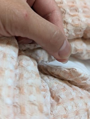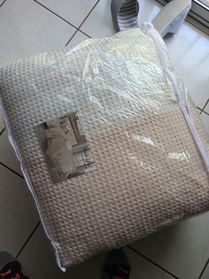 [This review was collected as part of a promotion.] I am absolutely in love with this gifted comforter set. It's incredibly warm but not too hot. The quality is unmatched, with no popped seams or loose threads. The top is a waffle knit and the bottom is a light down quilt. Especially with winter coming on, this comforter is having me crawling into bed early just to be cozy and warm.