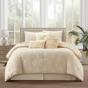This versatile set seamlessly complements any contemporary or modern style, bringing a touch of understated elegance to your space. Featuring a tufted jacquard geometric pattern in a solid color, it adds a sophisticated visual interest. Expertly crafted for comfort and durability, the comforter is lightweight yet cozy, perfect for use in all seasons. Enjoy the added convenience of easy care with this machine washable set, designed to maintain its plush texture and refined look wash after wash.