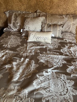 [This review was collected as part of a promotion.] The Therese 7 Piece Comforter Set by Nanshing America is a stunning addition to any bedroom. Made from luxurious satin with a jacquard pattern, this set exudes elegance and style. The set includes three decorative throw pillows, two pillow shams, one bed skirt, and one comfortable comforter. The king size and beige color add a touch of sophistication to the room. With its high-quality materials and chic design, this set is perfect for those who want to transform their bedroom into a cozy and stylish haven. Highly recommended for anyone looking to add a touch of elegance to their space.