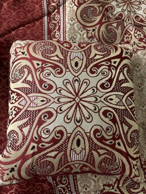 [This review was collected as part of a promotion.] This is a nice and vibrant colored comforter set. I love the color scheme of reds and gold on the top and the pattern incorporated. It is a little busy in terms of the patterns and shapes when you look at it close up but it looks good overall when you step back and look at it. The material and construction is well done and sturdy. The weight of the comforter will work for us most of the year as we prefer light weight comforters. The set includes decorative pillows which is really nice because you get the whole coordinated look and don’t have to worry about finding separate pillows.