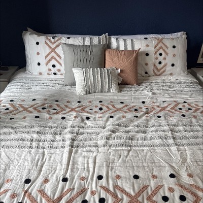 Nanshing 7pc Queen Olga Geometric Comforter Set Light Taupe