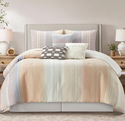 Immerse yourself in contemporary elegance with our 7-Piece Comforter Set, featuring an ombre waffle jacquard design that exudes modern sophistication. The subtle yet striking stripe pattern adds depth and dimension to your bedroom decor, creating a stylish ambiance that effortlessly captivates. Crafted with both style and practicality in mind, this set is machine washable for easy maintenance, ensuring that your bedding remains as pristine as the day you brought it home.