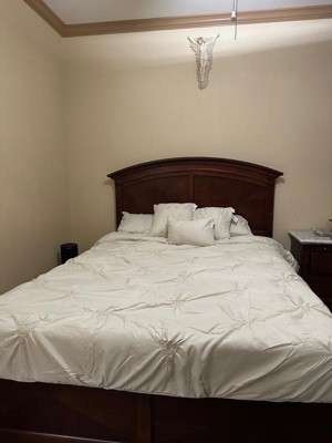 [This review was collected as part of a promotion.] Very comfortable set. I gave this comforter set for my parents and they love it. The color matches with our wall color. The set came with 7 pieces: 1 comforter, 1 bedskirt, 2 pillows sharns, and 3 decorative pillows. My favorite one is the comforter, it is thick but vey light, it’s soft and warm which is perfect for this winter. The design is very simple but very luxury, it blended in with the color of my wall.
