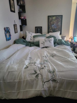 [This review was collected as part of a promotion.] I really like how soft and fluffy this comforter set is. I love the accent pillows it came with. The pillow cases are great and made really well I have thicker pillows for side sleepers and the pillow cases fit perfectly and don't slide off. The embroidery flower pattern is very pretty making this a great set for springtime. The blanket itself I'd warm but breathable. I would the Nanshing set for anyone looking for a Hugh quality soft warm yet breathable bed set.
