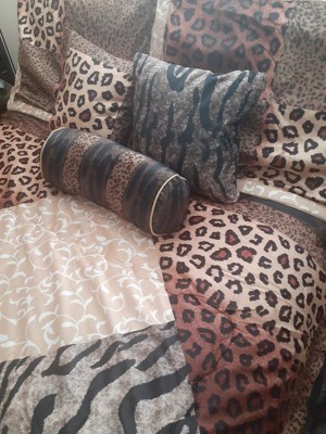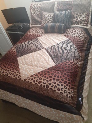 [This review was collected as part of a promotion.] This 7 piece set has brought my room out looking so wild and out with leopard print comforter with small pillows and matching shams. the fabric is soft fluffy and comfortable. The wild look is very elegant. The colors bring out the uniqueness of this comfort set. I got compliments. My young adult boy's like this comfortable comforter set. If you love leopard print and soft fabric with great quality this is the perfect set for one. I like the little pillows especially the cylinder one to go just right behind my neck. This is one of my favorite comforter sets that I have.
