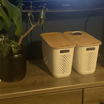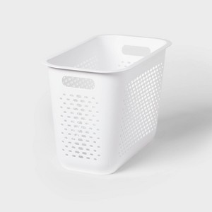 Narrow Large Decorative Plastic Bin White - Brightroom™: Modern Storage with Cut-Out Handles, 13" Cube Compatible