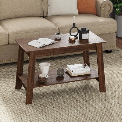 2-Tie Coffee Table, Rustic Wood Living Room Tables with Open Rectangular Storage Compartment, Coffee Tables for Living Room, Outdoors, Home Office, Bedroom