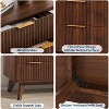 - 【Timeless Elegance Meets Modern Chic】The distinctive wave-like fluted panel enhances the texture and spatial presence of this exceptional piece. The faux marble top, adorned with earth-toned veins, complements the natural oak finish