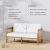 The Twila 3-piece patio loveseat and chairs set consists of two loveseat sofas and two matching chairs - the perfect wood patio conversation set whether you're hosting a BBQ with the neighbors or just kicking back with a cold one after a long day.