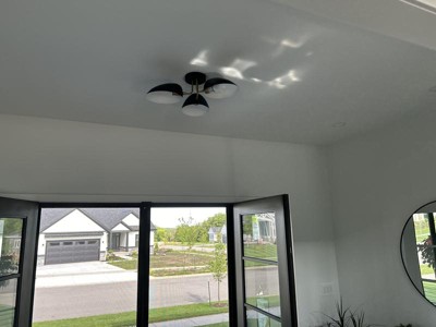 I was so impressed with the beauty of this fixture. Gorgeous metal flush mount and I love how you can easily point the lights up or down! Versatile and sleek!