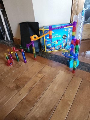 - Storage bag for marble run pieces is included