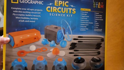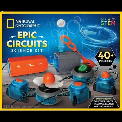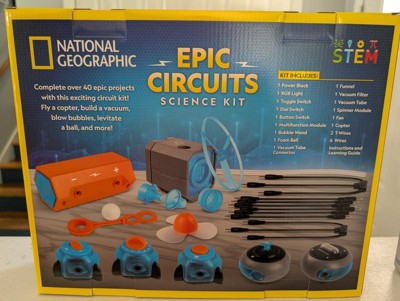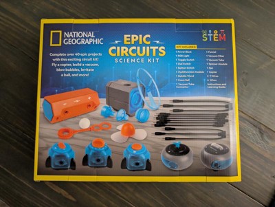 - Learn how to build circuts, power lights, vaccums, launch copters and more with the National Geographic Epic Circuits Science Kit!