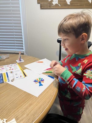 When my 5 year old boy saw this box, he was so excited for the “science experiment.” He enjoyed coloring the trees and shaping the branches… but did not like the wait. Or the final result. He thought it was “cool” but kept asking why the crystals weren’t hard like the crystal included in the box. Overall he enjoyed doing it though!