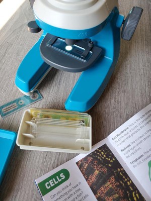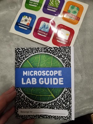 My daughter has been having lots of fun using this microscope to learn new things. She loves learning about the items in the included slides and finding items of her own to use in the blank slides. When the slides aren’t in use, they store perfectly under the microscope. The lab guide is helpful because it guides her through how to use the microscope.