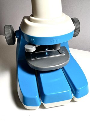 This National Geographic Explorer Series Microscope is a great starter microscope for young kids! My 8 year old daughter loved this set and really enjoyed viewing the included slides, as well as having the chance to make her own! This set is easy to use and since all the pieces are plastic, you don't need to worry about fragile or sharp glass slides. It has 3 magnification settings: 40x, 100x, & 400x and two different light settings. The images are clear enough for what would be expected for a child's toy microscope, but don't expect professional quality. The only downside I found to this microscope was that you can only move the slides up and down, but it doesn't include a knob to move them side to side, which is disappointing. Overall though, it's a fun beginner set!