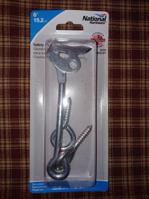 [This review was collected as part of a promotion.] This 6” hook is strong enough to hold a multitude of items including gates on our deck, tarps and other items. It made of steel and is zinc plated. It also has a clasp to lock in place. We are using it to secure our sail shade over our spa. I actually recommend all National Hardware as it comes with a Lifespan Limited Lifetime Warranty. You can’t go wrong with these products.
