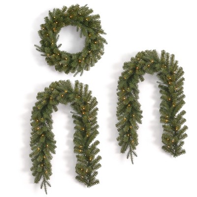The Norwood Fir is a thick, full garland featuring many more branch tips than other garland styles of similar size. It is pre-strung with 100 clear lights that remain lit even if a bulb burns out. This garland can be displayed over doors, windows, fireplace mantels, fence, or stairway railings in indoor or outdoor locations.