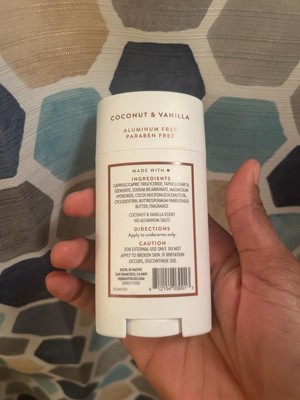 [This review was collected as part of a promotion.] This deodorant smells amazing! I absolutely love the lazy summer vibes of the coconut and vanilla scent. It reminds me of the beach and warm days. Its easy to apply and feels so smooth and soft on my skin. It lasts all day and keeps me smelling so clean and fresh.
