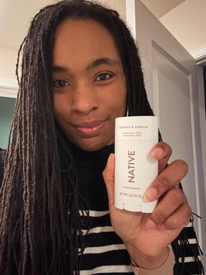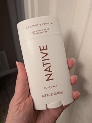 [This review was collected as part of a promotion.] I’ve been loving this coconut and vanilla scent from Native! It’s my favorite scent, stays on all day and very comfortable since other deodorants make me itchy!!