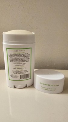 [This review was collected as part of a promotion.] This is a great deodorant! It smell so refreshing with the scent of cucumber and mint. It is long lasting and goes on smoothly. It is aluminum free and paraben free so there are good ingredients in it. It is lightweight and does not cause irritation, I would recommend!