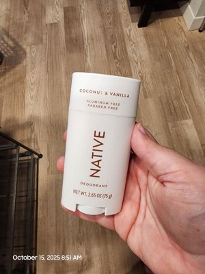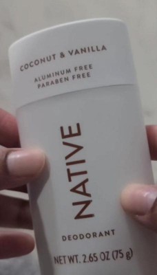 A: Hi AC, Thanks for reaching out about our Native Deodorant - Coconut & Vanilla - Aluminum Free - 2.65 oz! While we would love to help you here, we ask that you please get in touch with us at support@nativecos.com so that we can best assist with all of your product questions :) We appreciate your patience and look forward to hearing from you soon! -Native