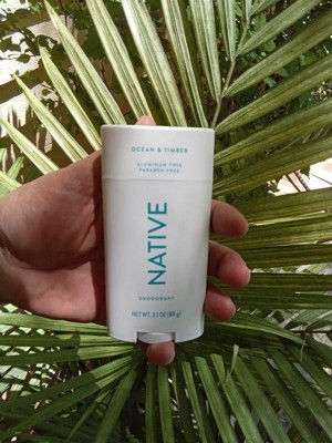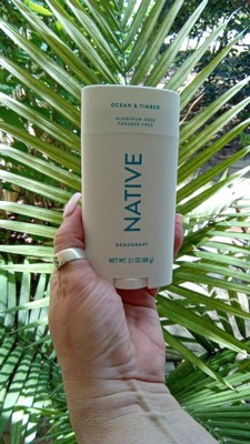 [This review was collected as part of a promotion.] Im really impressed with the native ocean and timber deodorant. The scent is a perfect balance of fresh and earthy it's noticeable without being overpowering. In terms of effectiveness, it keeps me smelling great through. Ingredients value